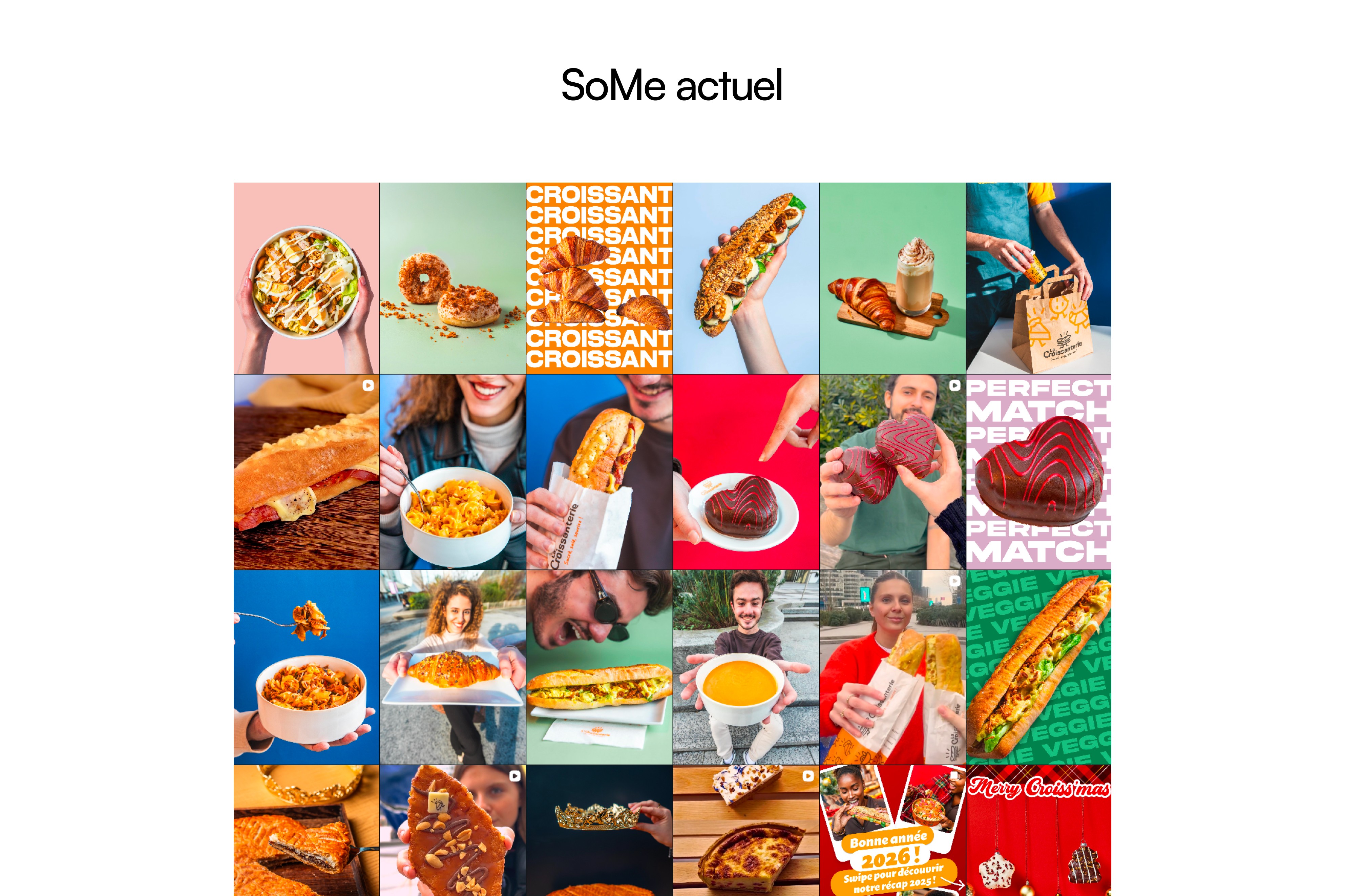 La concurrence est dans les tons neutres et les visuels froids. La Croissanterie, elle, assume la couleur.