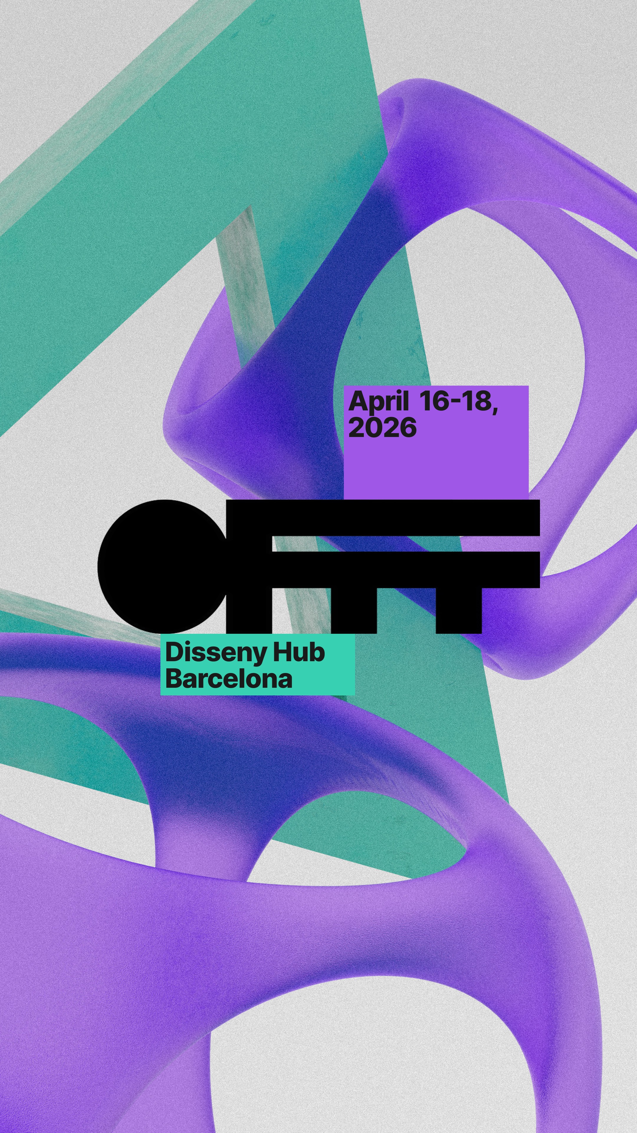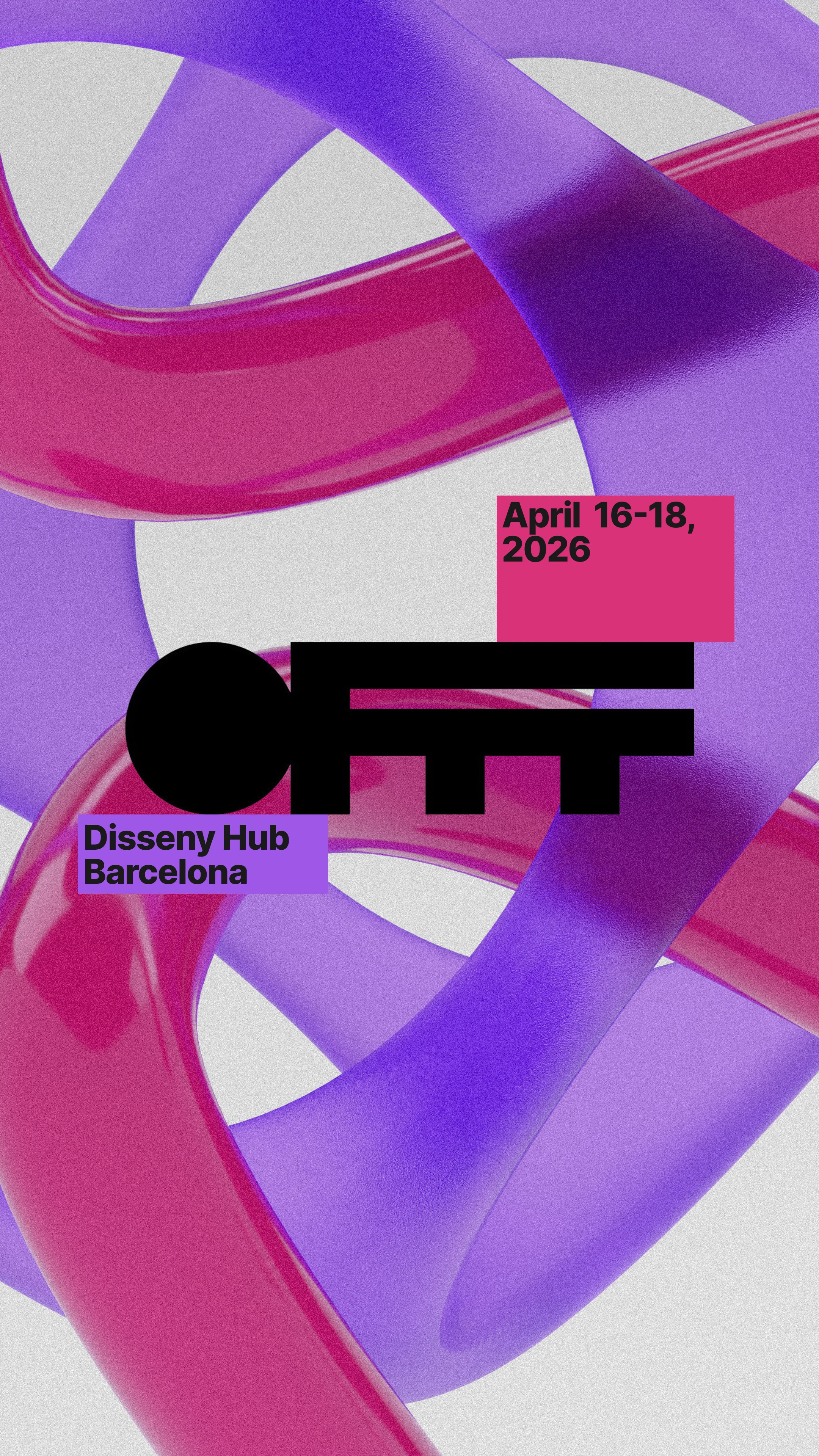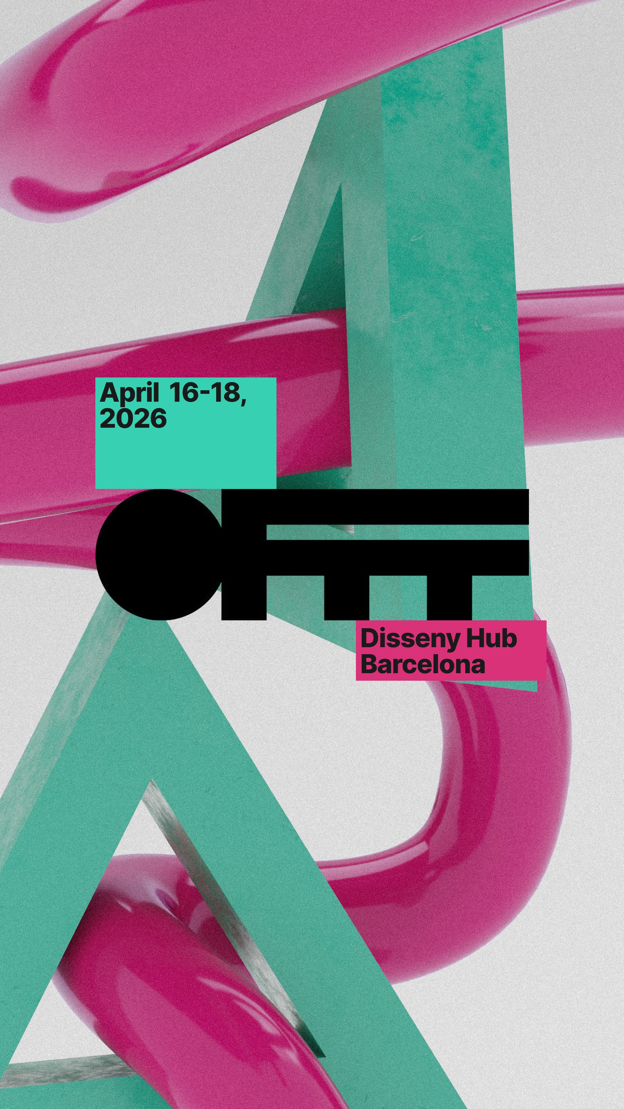 Pour traduire ça visuellement, j'ai choisi le langage de la matière. Des formes 3D qui s'attirent, se frôlent, se traversent. Le magnétisme comme métaphore des rencontres et des influences qui font le OFFF. Au centre de chaque visuelle le OFFF. Pas comme un logo posé là par réflexe, mais comme un point de repère autour duquel tout s'organise. Ce qui attire, ce qui retient.