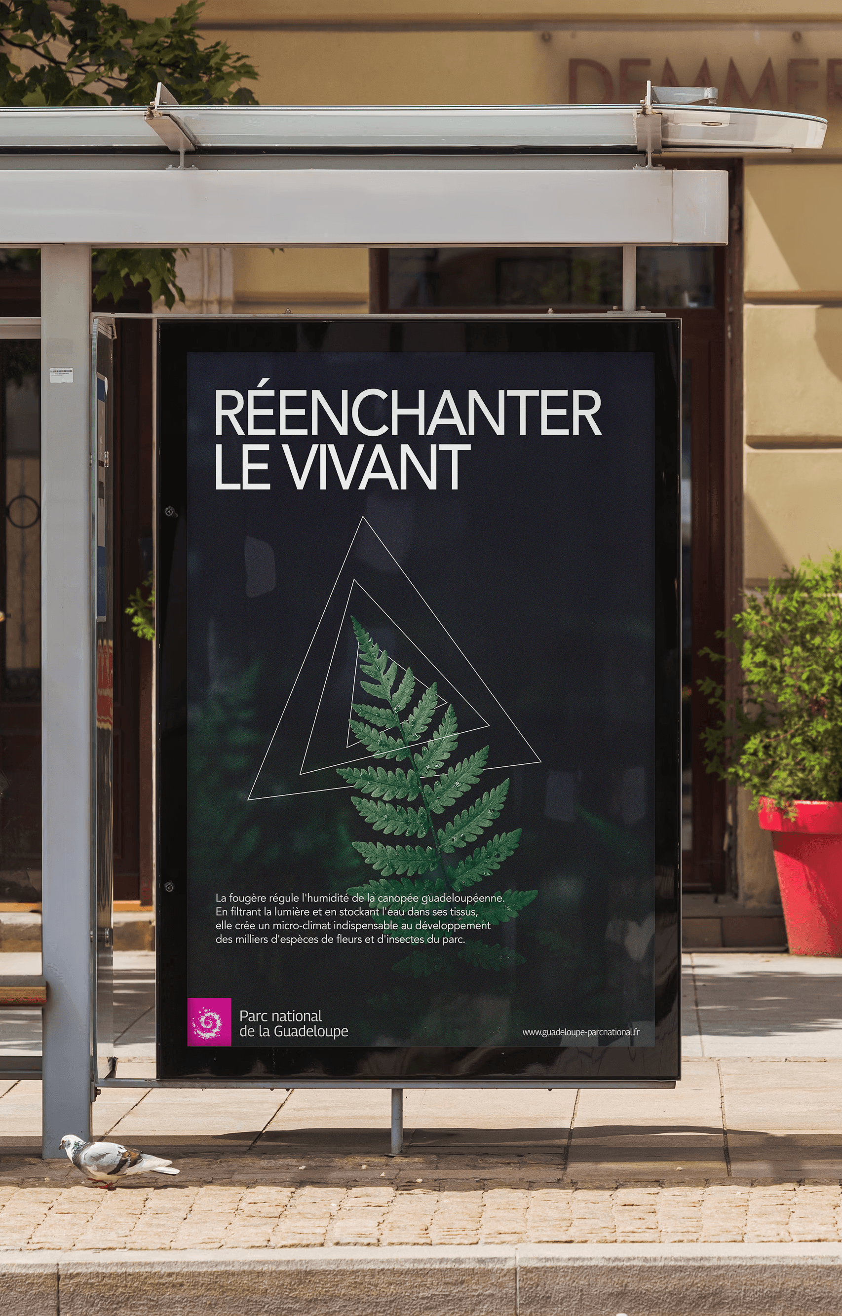 Enfin la campagne agit aussi comme un nudge comportemental. Le piétinement et la cueillette comptent parmi les premières causes de dégradation dans les parcs. Comprendre qu'une mousse est une éponge vitale pour l'écosystème, c'est déjà faire plus attention à ne pas la piétiner. L'affiche devient alors une forme de prévention passive intégrée au quotidien, sans jamais prendre la forme d'une injonction.